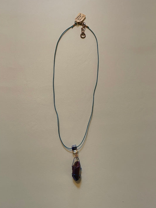 Quartz Crystal on Leather Cord with Artisanal Glass Cane Bead